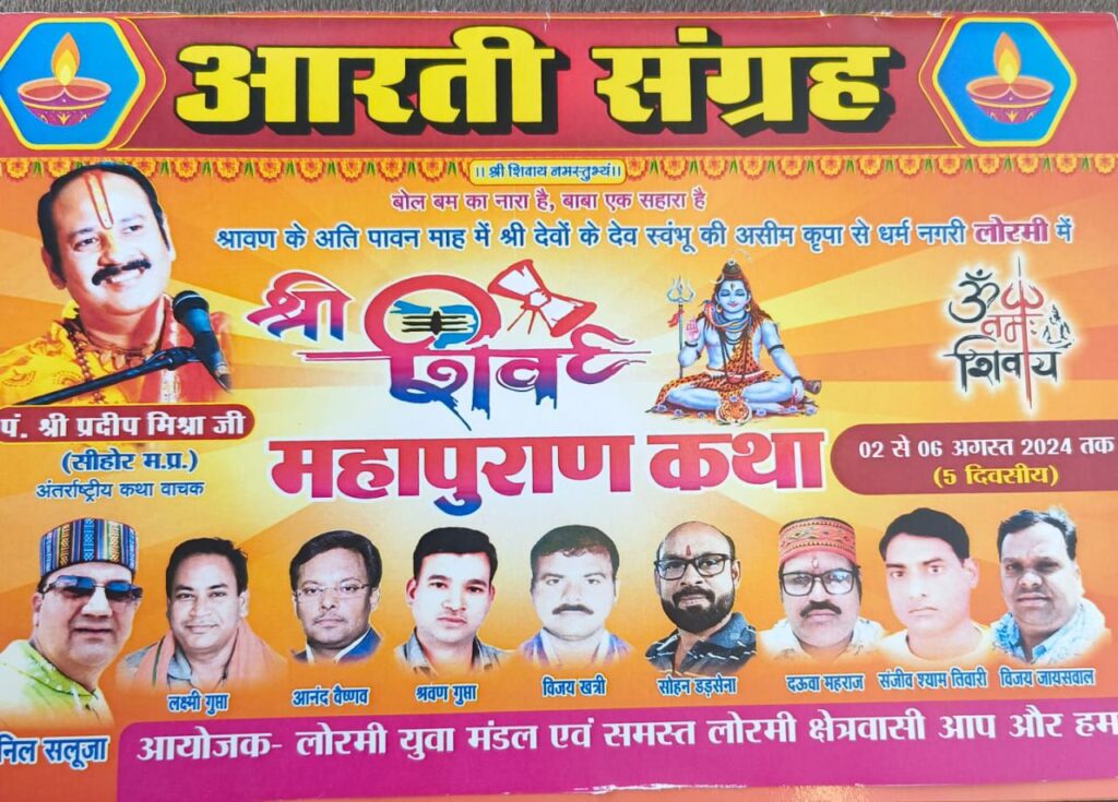 श्रावण मास के अवसर पर लोरमी नगर में हॉगा शिवमहापुराण शुप्रशिद्ध कथा वाचक प्रदीप मिश्रा सिहोर वाले महाराज जी के मुख से लोरमी नगर शिवमहापुराण का रसपान वही आयोजक समिति युवा मंडल के प्रमुख अनिल सलूजा ने बताया कि