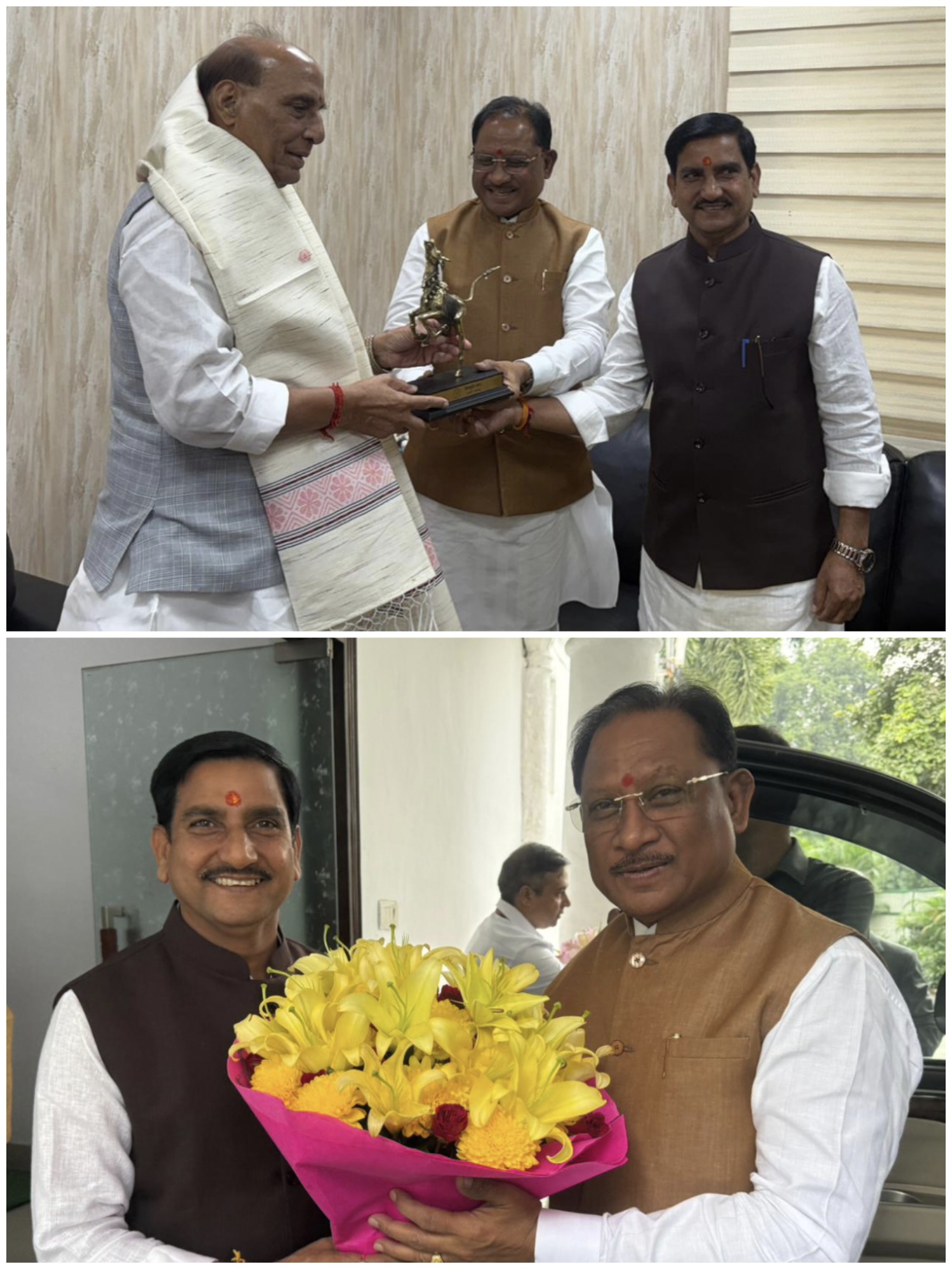 छत्तीसगढ़ के मुख्यमंत्री श्री विष्णुदेव साय ने आज केंद्रीय रक्षा मंत्री श्री राजनाथ सिंह से मुलाकात कर बिलासा देवी केंवट एयरपोर्ट, चकरभाठा (बिलासपुर) के विस्तारीकरण से संबंधित विषयों पर विस्तृत चर्चा की।