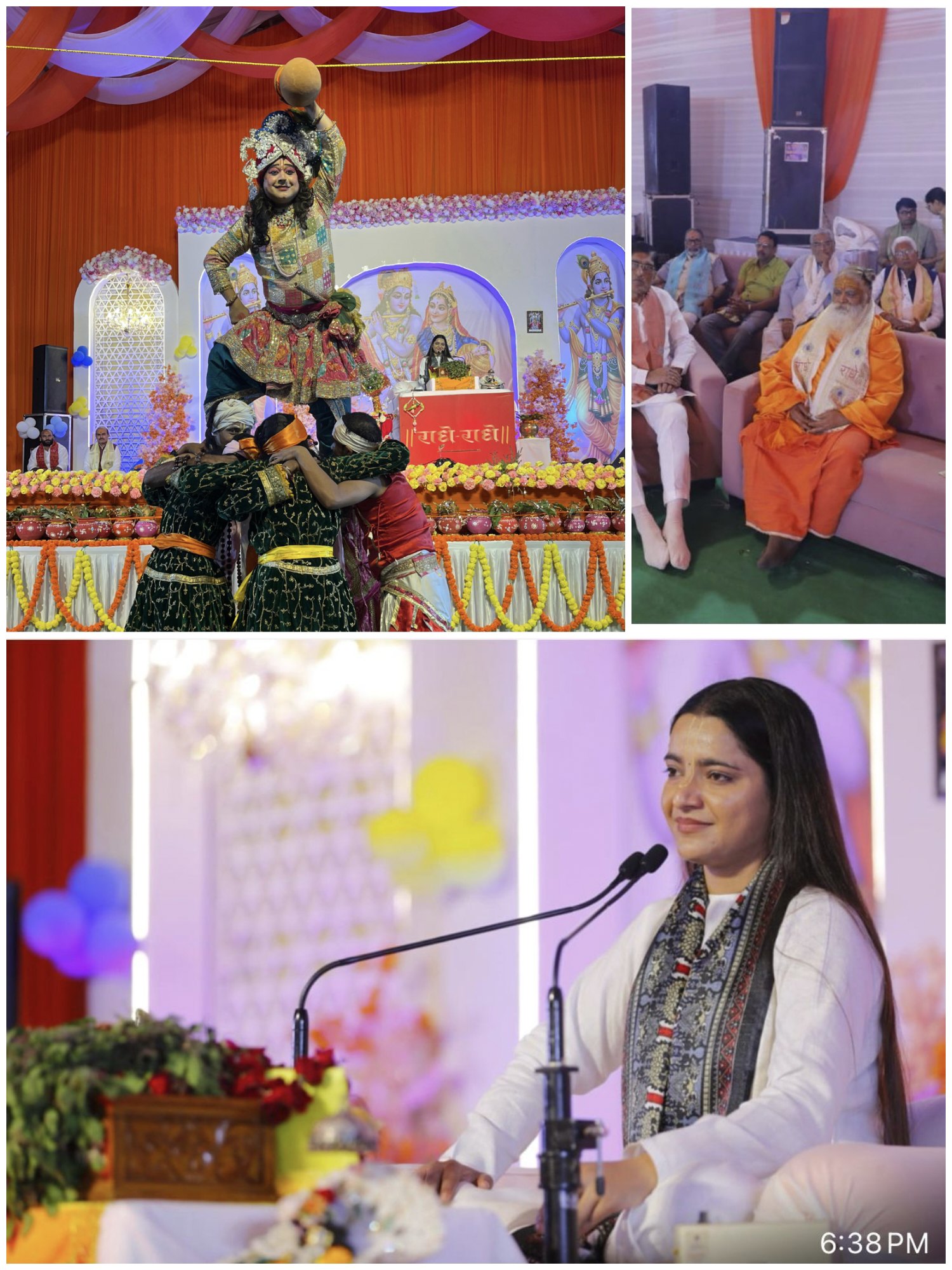 दीदीजी ने बाल-कृष्ण की मनोहर लीलाओं — जन्मोत्सव, पूतना वध, यशोदा मैया की ममता, कालिय नाग मान-मर्दन, माखन चोरी और गो-प्रेम — का भावपूर्ण वर्णन किया। उन्होंने कहा कि भगवान कृष्ण पूर्णब्रह्म होते हुए भी माता-पिता के चरण स्पर्श करने में संकोच नहीं करते—यही जीवन के संस्कार हैं।