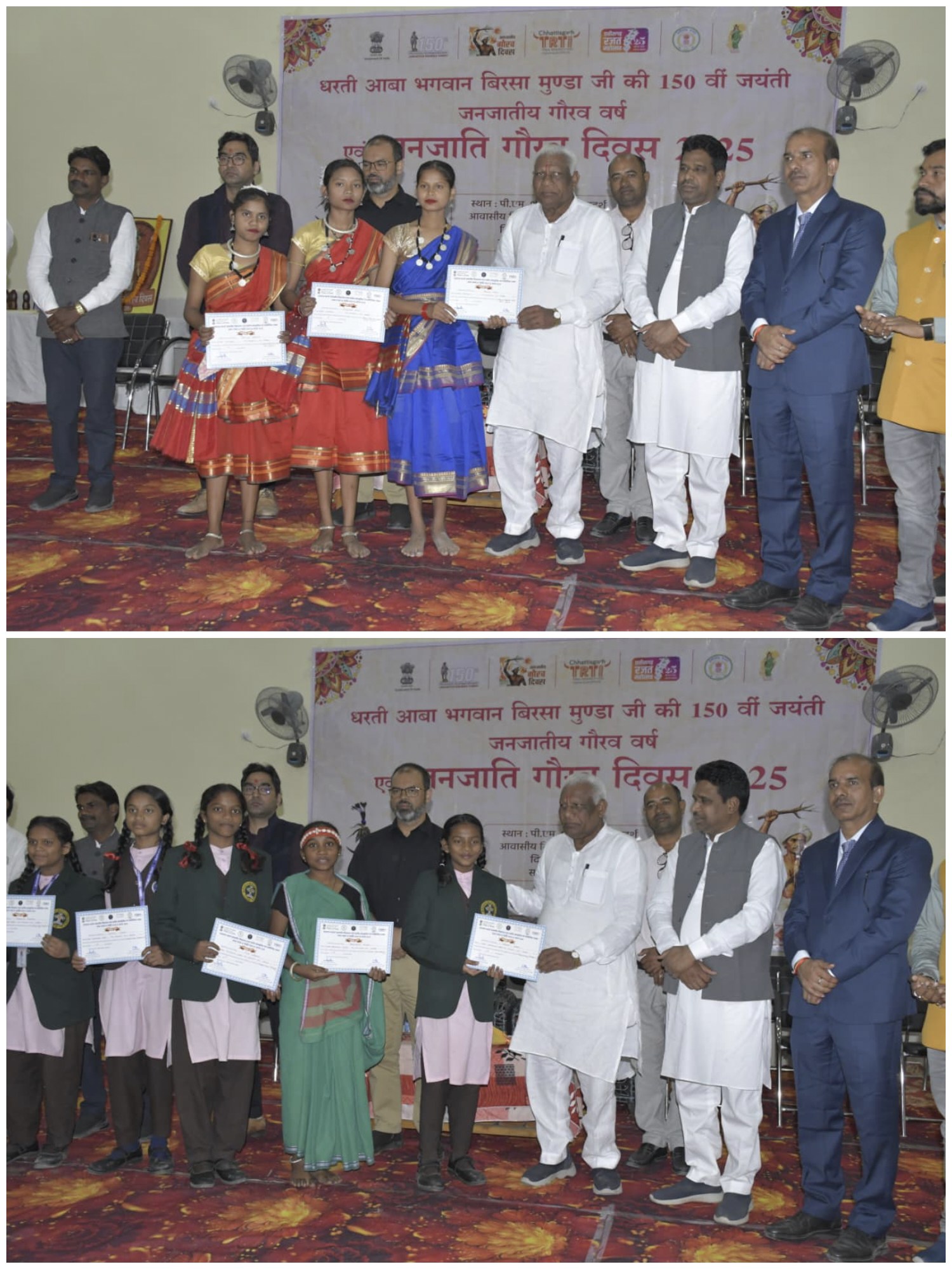 कार्यक्रम में जनजातीय संस्कृति पर आकर्षक प्रस्तुतियाँ दी गईं, साथ ही बिरसा मुंडा के जीवन प्रसंगों को प्रेरक रूप में साझा किया गया।