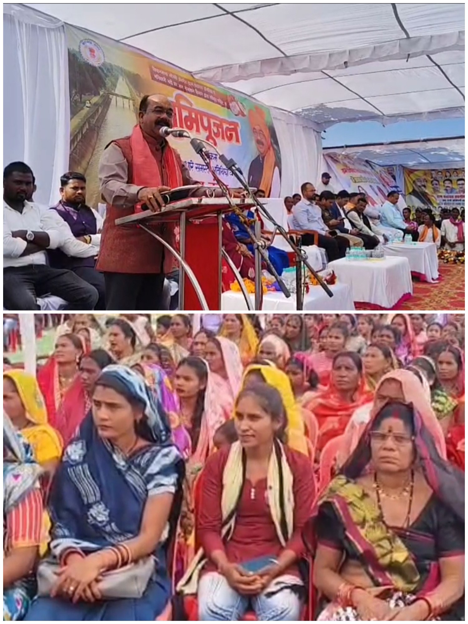 शुक्रवार 26 दिसम्बर 2025 – उप मुख्यमंत्री श्री अरुण साव ने आज लोरमी क्षेत्र को सिंचाई व जल-संवर्धन की बड़ी सौगात दी। ग्राम डोंगरिया में मनियारी नदी पर 4.68 करोड़ की लागत से एनीकट निर्माण का भूमिपूजन करते हुए कहा कि यह परियोजना आसपास के गांवों में सिंचाई, निस्तारी और जल संरक्षण को नई मजबूती देगी। इससे डोंगरिया, जमुनाही, उरईकछार, लाखासार, हरदीबांध, घानाघाट सहित कई गांवों को सीधे लाभ मिलेगा और करीब 250 एकड़ भूमि सिंचित होगी।