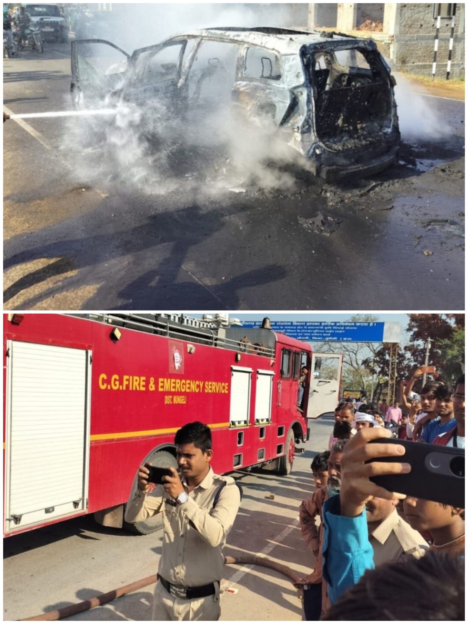 घटना लगभग सुबह 8 बजे की है। जानकारी के अनुसार मोहतरा के लोग विवाह उपरांत विदाई के बाद बोधापारा मुख्य मार्ग से गुजर रहे थे। सफर के बीच अचानक कार से धुआं उठने लगा और कुछ ही पल में आग ने भीषण रूप ले लिया। चालक ने तुरंत गाड़ी रोककर सभी को बाहर निकलने का इशारा किया, जिससे सभी सुरक्षित बाहर आ गए।